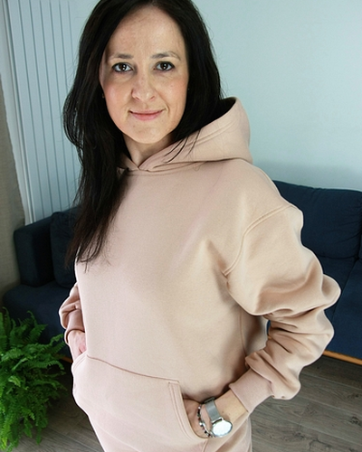 Komplet dresowy bluza z kapturem Hoodie i spodnie dresowe beż