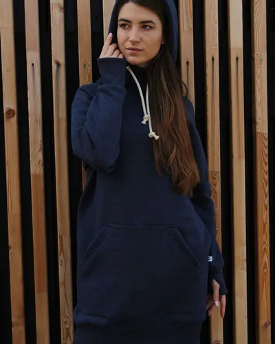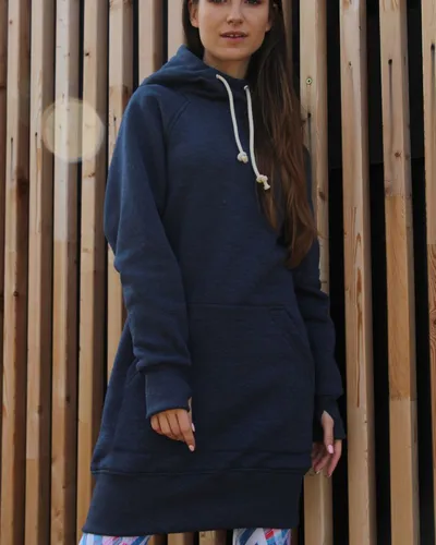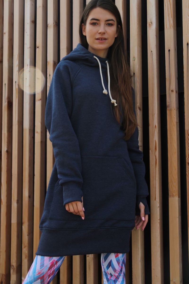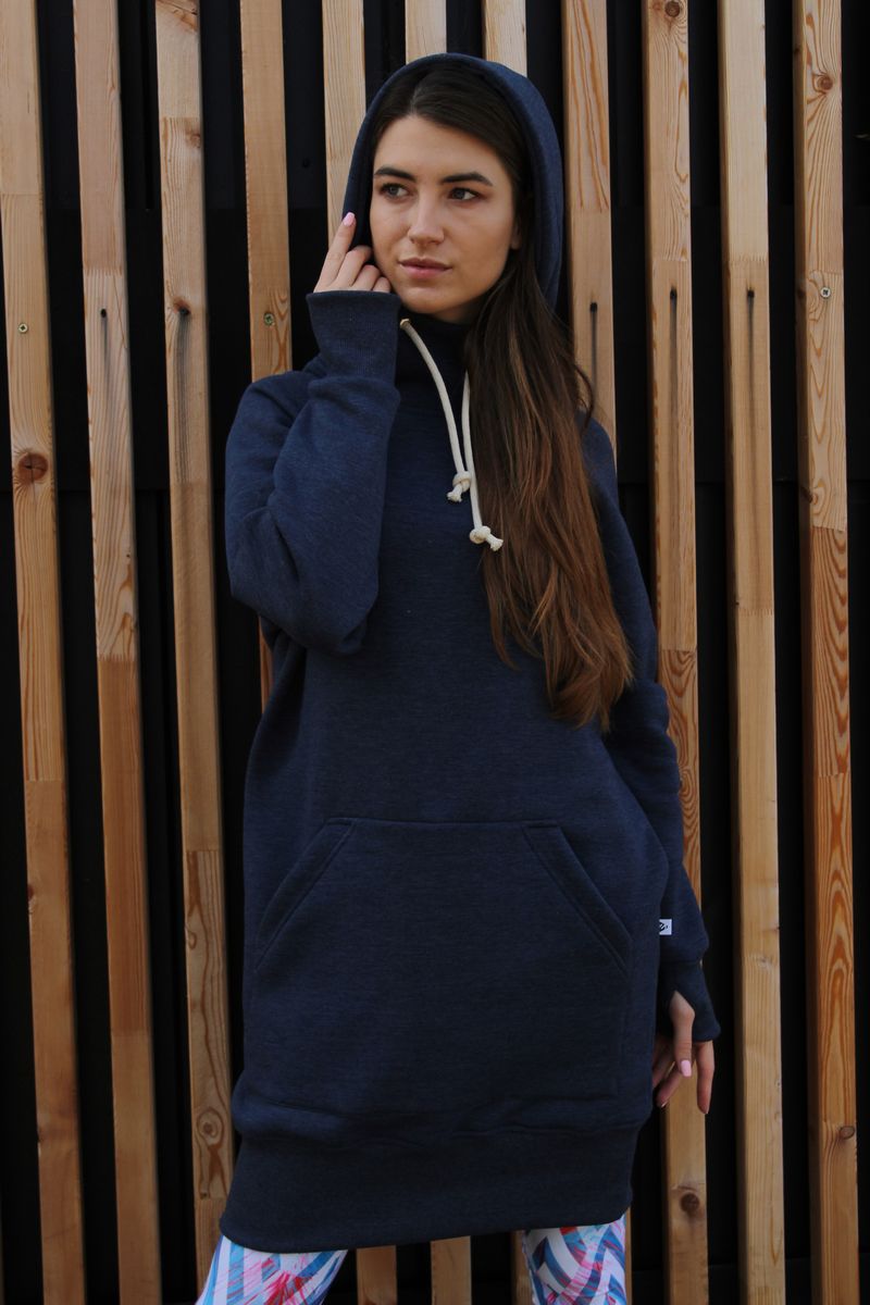 Długa Damska Bluza Bawełniana Z Kapturem Kolor Dżins