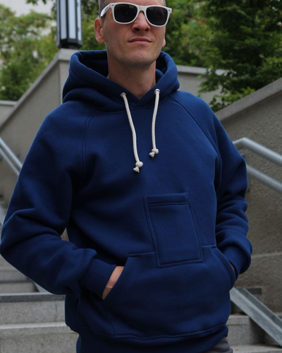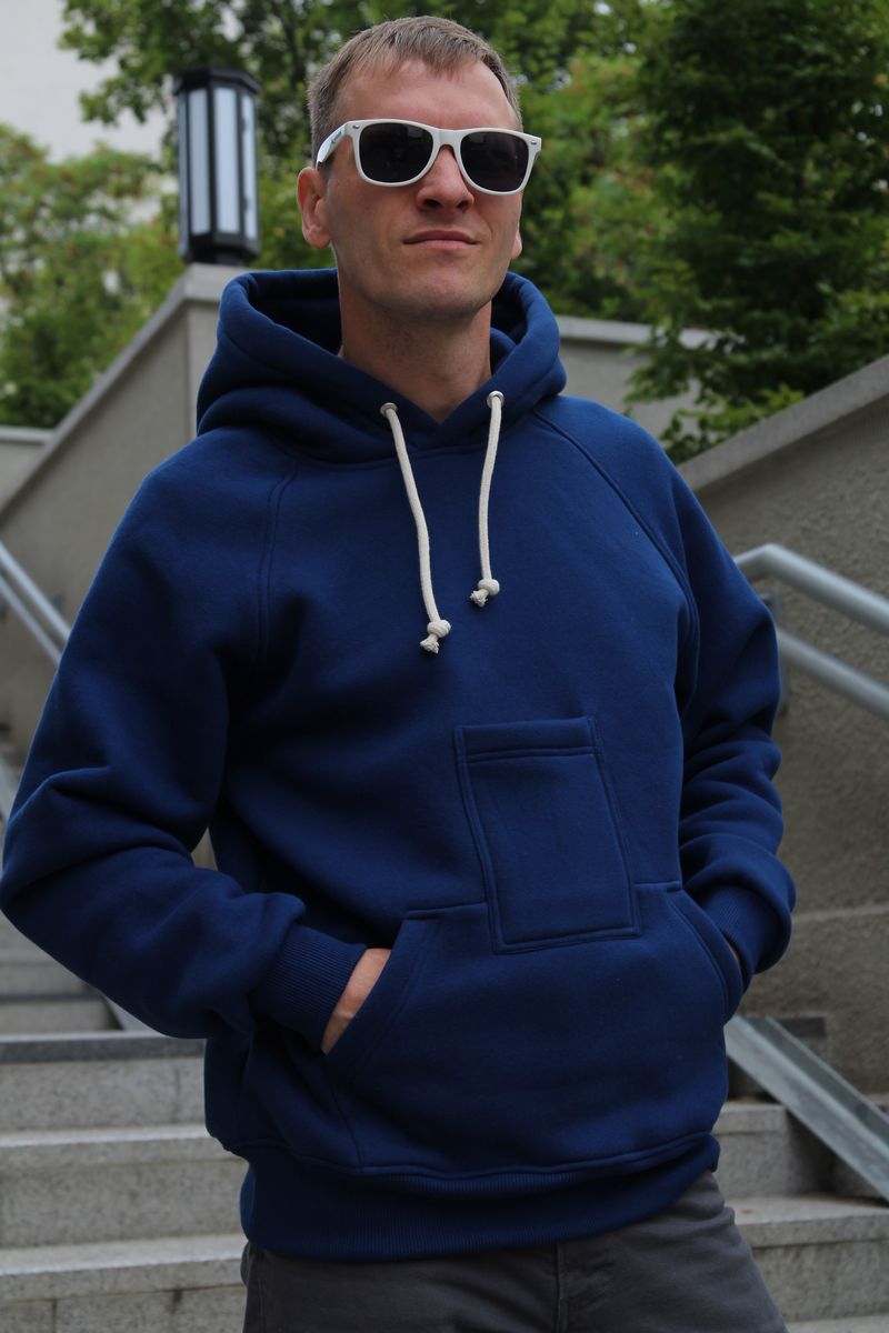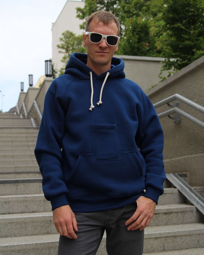 Bluza z kieszonką na butelkę to oryginalna i wygodna bluza z grubej dzianiny bawełnianej w kolorze granatowym. Oryginalny prezent dla faceta. Kaptur w bluzie uszyty jest z podwójnej warstwy bawełny dzięki czemu doskonale chroni głowę, a jednocześnie dobrze się prezentuje leżąc na barkach. Bluza bawełniana posiada kieszonkę kangur. Rękawy reglanowe i dół bluzy wykończone są prążkowanym ściągaczem, którego grube prążki świetnie podkreślają jakość wyrobu. Dodatkowo bluza posiada specjalna kieszonkę w której możesz umieścić jakiś drobiazg lub butelkę z napojem.